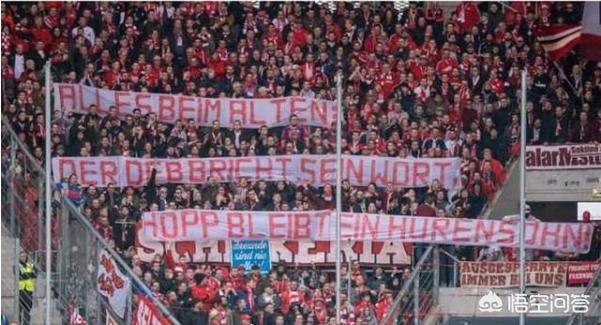 是的,没错!就在昨天晚上过去的德甲比赛中,拜仁客战霍芬海姆,霍芬海姆0-6告负拜仁,但是场上发生了很糟糕的一幕:拜仁极端球迷在比赛后半打出横幅,辱骂霍芬海姆老板霍普,并声称德国足协欺骗了球迷,没有说话算话。虽然经过拜仁主帅弗里克劝说暂时收起标语,但是10分钟后,再一次将横幅打出,受到干扰球员和教练等人陆续离开了球场进行紧急商讨,虽然拜仁将帅及名宿到场边劝说球迷冷静依然无效。出于对极端球迷的抗议,拜仁及霍芬海姆球员均商议进行了一段“和平的”传球接力并在比赛结束后共同致谢球迷的观看。