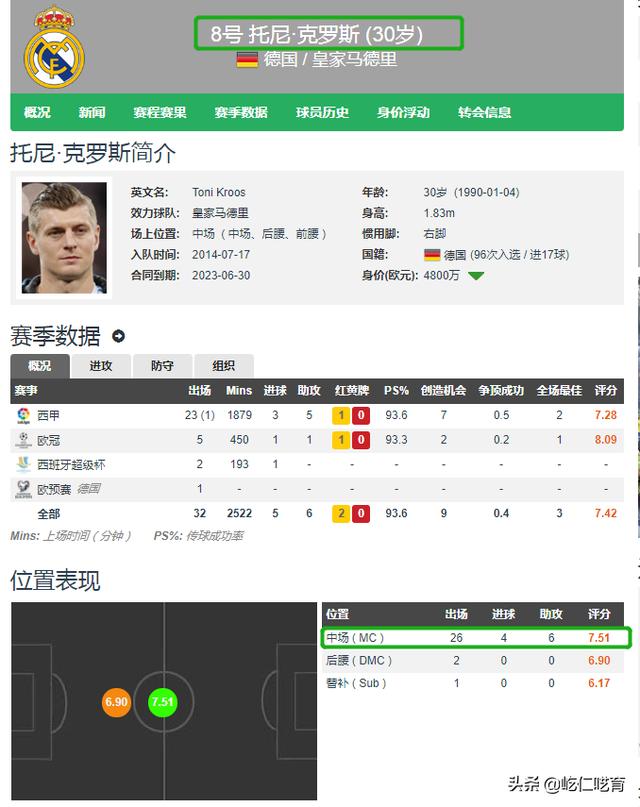 因此来说,依旧属于纯粹8号位球员的克罗斯,仅仅是从药厂和拜仁时期的前腰,调整为皇马和德国队时期的中前卫。依旧主打进攻的传递和调度,对于防守仅仅是协防而非主要球员;