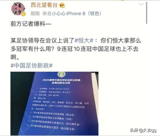 去年12月25日召开的中超投资人会议上,据报道某协领导说了一句引起比较多关注的话,称恒大拿那么多冠军又有什么用、9连冠10连冠中国足球也上不去啊之类。此话一出,坊间很是热议了一阵子,各种球迷、网友更是开足了火力狂轰滥炸。不过,令人奇怪的是,作为当事者的恒大,自始至终缄默。