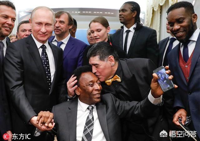 在贝利面前,马拉多纳也是毕恭毕敬!甚至去亲吻贝利的脸颊!