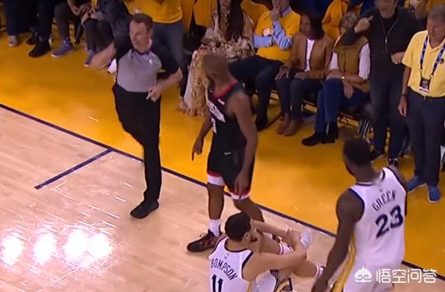紧随其后6秒钟之后,保罗抢到了这个关键的篮板球,但是就当他传球的那一刻与克莱汤普森发生了身体碰撞,最终导致火箭队出现失误,丢掉了这个球权,对于这连续两次裁判没有响哨,保罗恼羞成怒,直接冲到边裁那里,用手有一个轻微拉拽裁判的动作,想要和他理论。