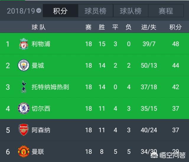 圣诞赛程才刚刚开始,英超就好戏不断,BIG6中利物浦、热刺、阿森纳、曼联均如愿以偿全取三分,曼城、切尔西主场爆冷输球,我们先看一下积分榜。