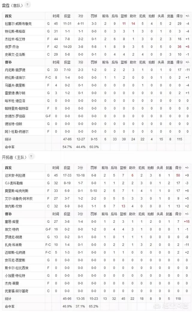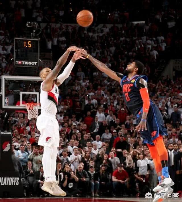 这场比赛威斯布鲁克全场44分钟,31中11,三分11中4,拿下29分14助攻11篮板4抢断2盖帽,命中率35.5%,跟利拉德的命中率51.5%,相距甚远,虽然这场比赛威少三分球还不错命中4个,但利拉德全场命中了10记三分球啊!保罗-乔治全场42分钟,20中14,三分8中3,拿下36分9篮板3助攻,雷霆龟椒组合一同拿下65分17助攻20篮板依旧没能帮助雷霆在本轮系列赛拿下第二场胜利,乔治在赛前发出的致胜豪言也最终被打脸,利拉德这场G5可以说是一战封神,拉塞尔-威斯布鲁克在他面前再也算不上超巨,利拉德一下子晋升为联盟前五的顶级后卫,他的能力甚至已经超过了凯里-欧文,比肩库里、哈登这样的顶级巨星了。