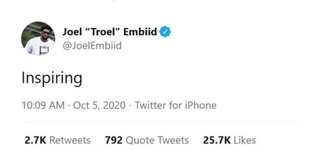 恩比德推文:Inspiring(鼓舞人心的)!