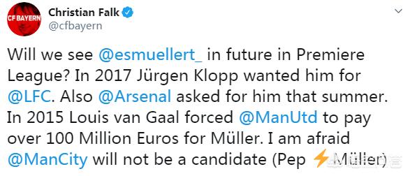 现在穆勒才刚刚放话出来,追求的球队可能还在观望。但有几家球队可能是潜在的下家。《体育图片报》主编法尔克在推特中写道:2015年,时任曼联主帅范加尔曾多次要求管理层耗资1亿欧元拿下,但最终因为球员本人的原因,这笔交易流产;2017年,克洛普曾向俱乐部申请过穆勒的转会事宜。