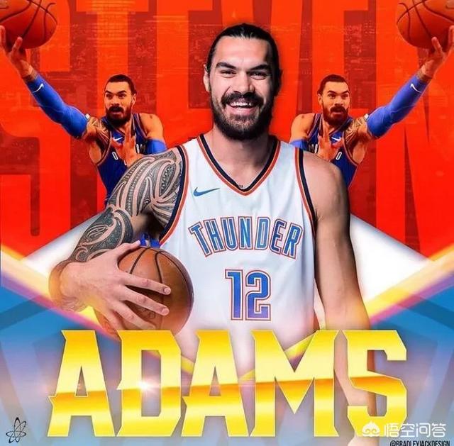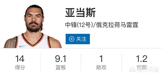 最值得吹捧的就是场均进攻篮板5.1个防守篮板3.9个。场均前场篮板联盟第一,这个数据有多吓人,简单点理解就是威少失误的次数,亚当斯一个人就可以弥补回来。