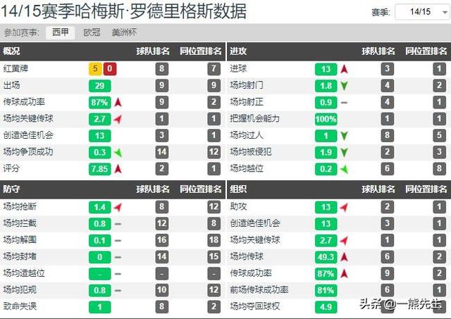 J罗的脚法华丽,在场上拥有出众视野,两者结合,让他总是传出足够创造力的传球,进攻才华有目共睹,但相应的,他在防守端的表现表现就很一般了,即使在巅峰期的皇马,他的场均拦截只有1.4次、抢断0.1次、争顶成功0.3次的水准,都足见其攻强守弱的问题。