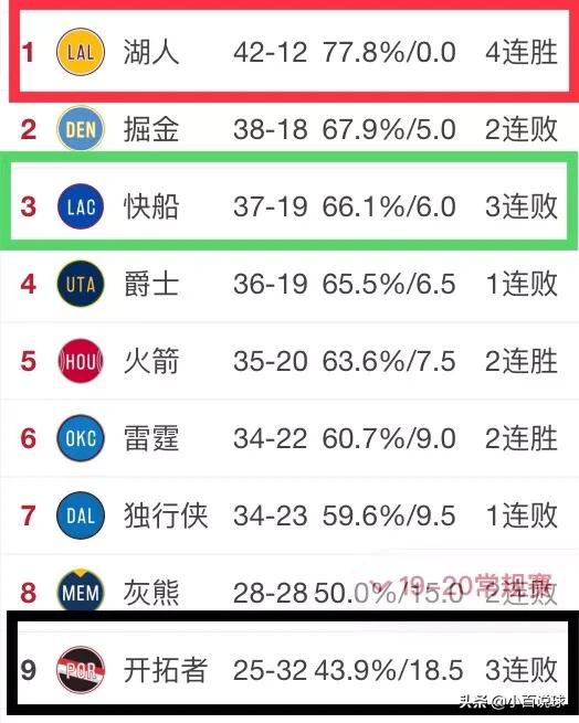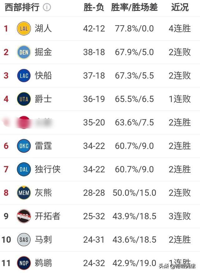 上图是目前西部前九位排名
