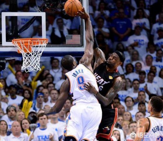 11-12赛季,热火和雷霆的第二场总决赛,在首节即将结束时,詹姆斯突入内线欲要完成单手劈扣,但却遭到伊巴卡封盖,有意思的是伊巴卡在完成这次封盖之后,还对詹姆斯干起了穆托姆博招牌的摇手指。