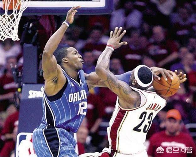 在08-09赛季的东部决赛中,具体是那场比赛不记得了,只记得当时詹姆斯过掉防守球员,加速冲起来准备暴扣,结果霍华德在内线高高跃起,正面和詹姆斯身体对抗,把詹姆斯的扣篮盖了下来。