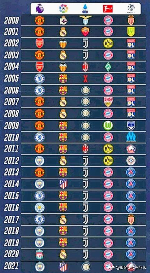 上个周末德甲霸主拜仁击败联赛冠军直接竞争对手多特提前3轮夺得德甲冠军,从而完成了德甲10连冠的伟业,这也使得他们成为五大联赛首支完成10连冠的球队。在19/20赛季由老妇人尤文创造的意甲9连冠纪录也就此被拜仁时隔2年打破,斑马军团在11/12至19/20赛季完成的意甲9连冠,直到上赛季被他们联赛中的死敌国米终结遗憾未能早拜仁一步完成10连冠伟业,此外虽然如今法甲的霸主是大巴黎,但连冠纪录却属于7连冠的里昂,西甲纪录则是由皇马创造的5连冠,但同为五大联赛的英超却最多也只有曼联的3连冠,近4年三夺联赛冠军的曼城中间被利物浦在19/20赛季中段了其夺冠势头,为何在英超不要说连冠纪录这么短,就连卫冕都很难呢?下面就结合发生在英超时代联赛冠军身上的故事来一探究竟。