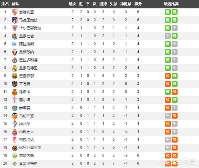 16-20名:西班牙人(爱斯宾奴)、格拉纳达(格兰纳达)、比利亚雷亚尔(维拉利尔)、莱加内斯(雷加利斯)、皇家贝蒂斯(不变);