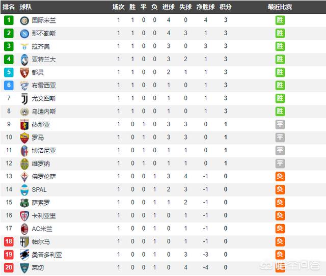 1-5名:国际米兰(不变)、那不勒斯(拿玻里)、拉齐奥(拉素、拉索)、亚特兰大(阿特兰大)、都灵(拖连奴);