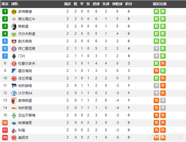11-15名:柏林赫塔(哈化柏林)、沙尔克04(史浩克04)、奥格斯堡(不变)、柏林联盟(柏林联)、云达不莱梅(不变);