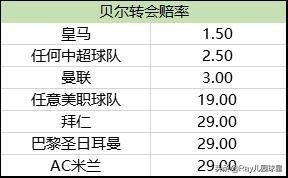 日前贝尔最大的三种可能,中超、曼联/热刺、巴黎。而且目前博彩公司也给出了一系列贝尔下家,其中除了留在皇马,就属中超的赔率最低。